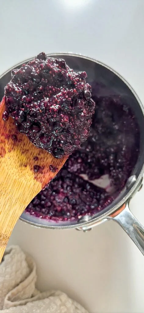 if you want the blueberries more smashed, you can do it while simmering with a fork or spoon!
