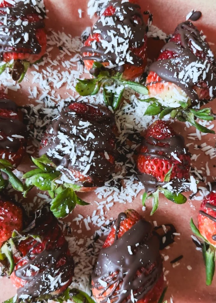 This is an easy recipe for chocolate covered strawberries, with an extra touch of delicious coconut flakes.